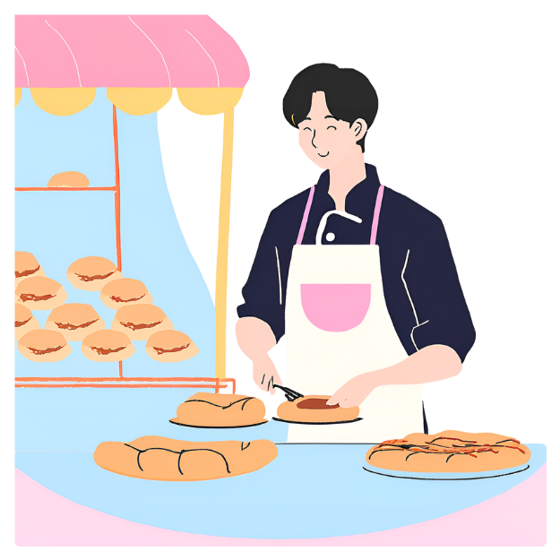Taehyung é melhor amigo de infância de Jimin e um dos únicos amigos que Jungkook tem. Ele namora Jin, dono da barraca de pastel mais famosa da feira.